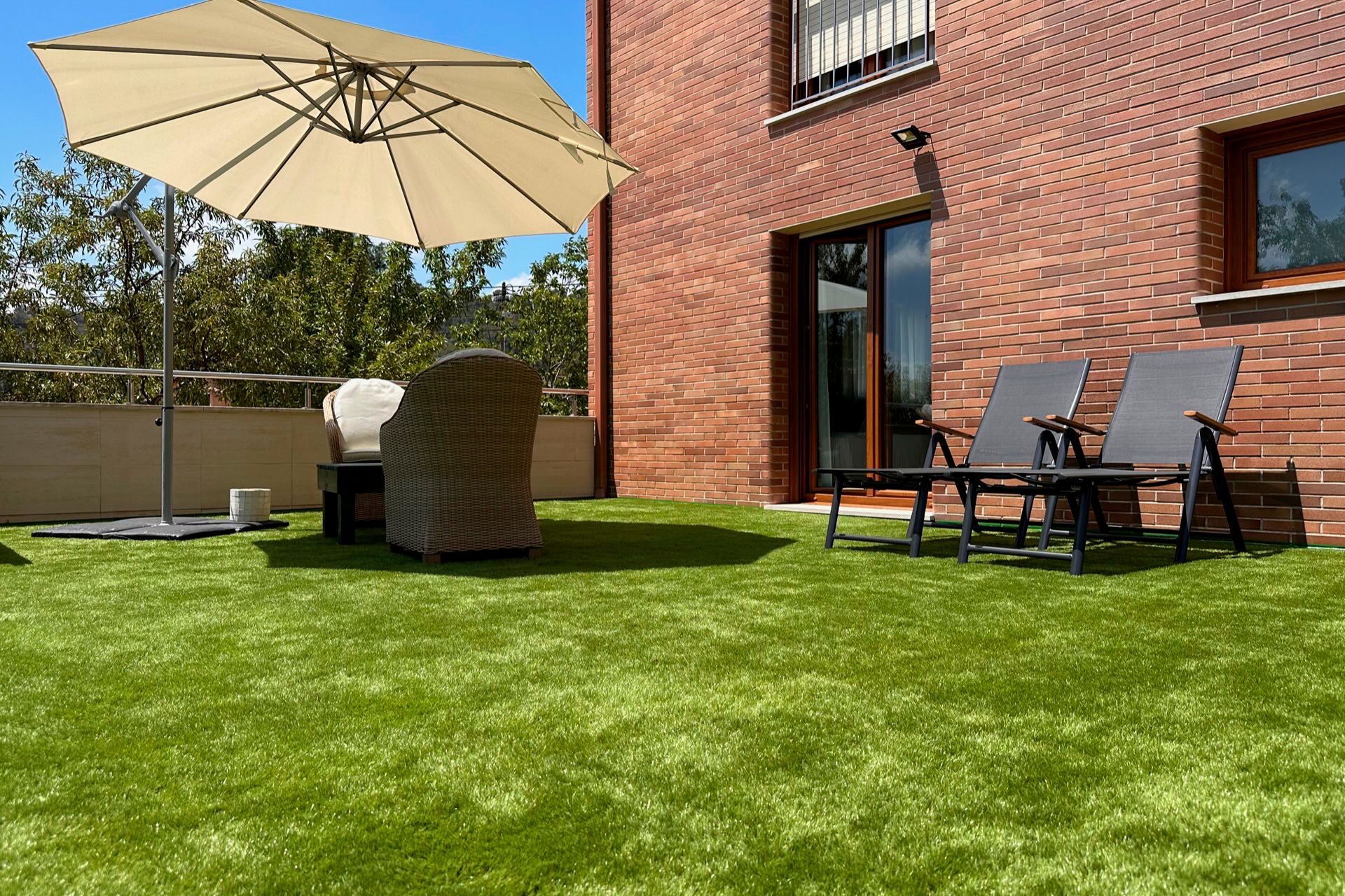 The ultimate SONO experience: a 33 m² studio opening onto a spectacular 25 m² private terrace. This outdoor oasis features chill-out furniture, artificial grass, and ambient night lighting, ideal for enjoying intimate al fresco dinners.