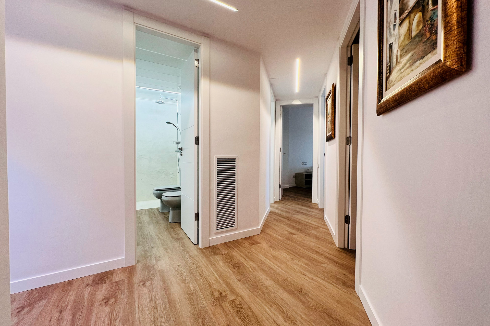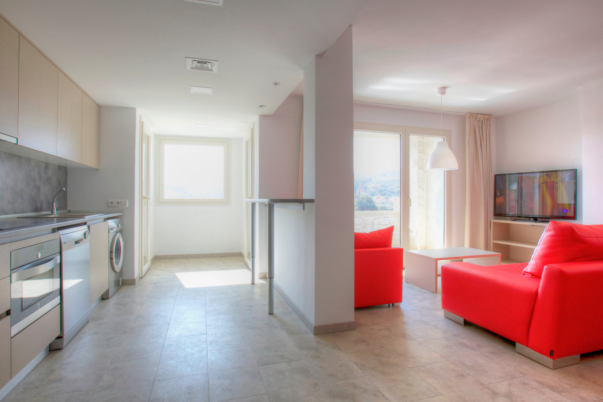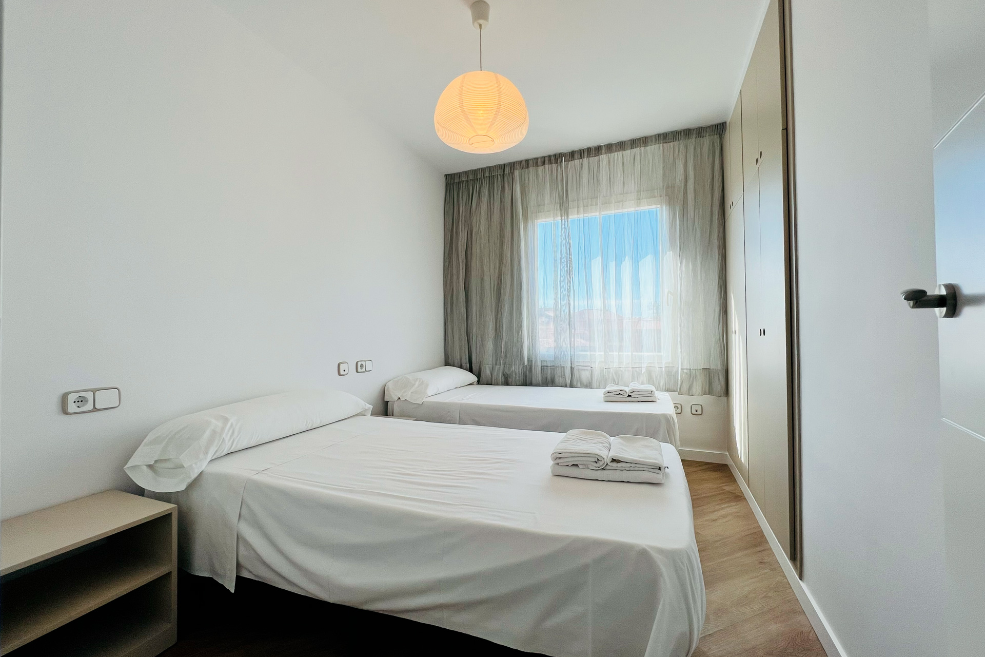 Conçu pour offrir un niveau de confort supérieur, cet appartement climatisé de 110 m² (situé au troisième étage sans ascenseur) a été rénové afin de garantir un séjour premium. Il dispose de 4 chambres pour 7 personnes, avec des matelas haut de gamme (32 cm avec mousse viscoélastique) pour un repos optimal. La cuisine est entièrement équipée avec lave-vaisselle et petits électroménagers supplémentaires. Le spacieux salon comprend une TV de 50″, de grands canapés et une cheminée décorative, avec accès à l’une des deux terrasses aménagées pour profiter de l’extérieur.