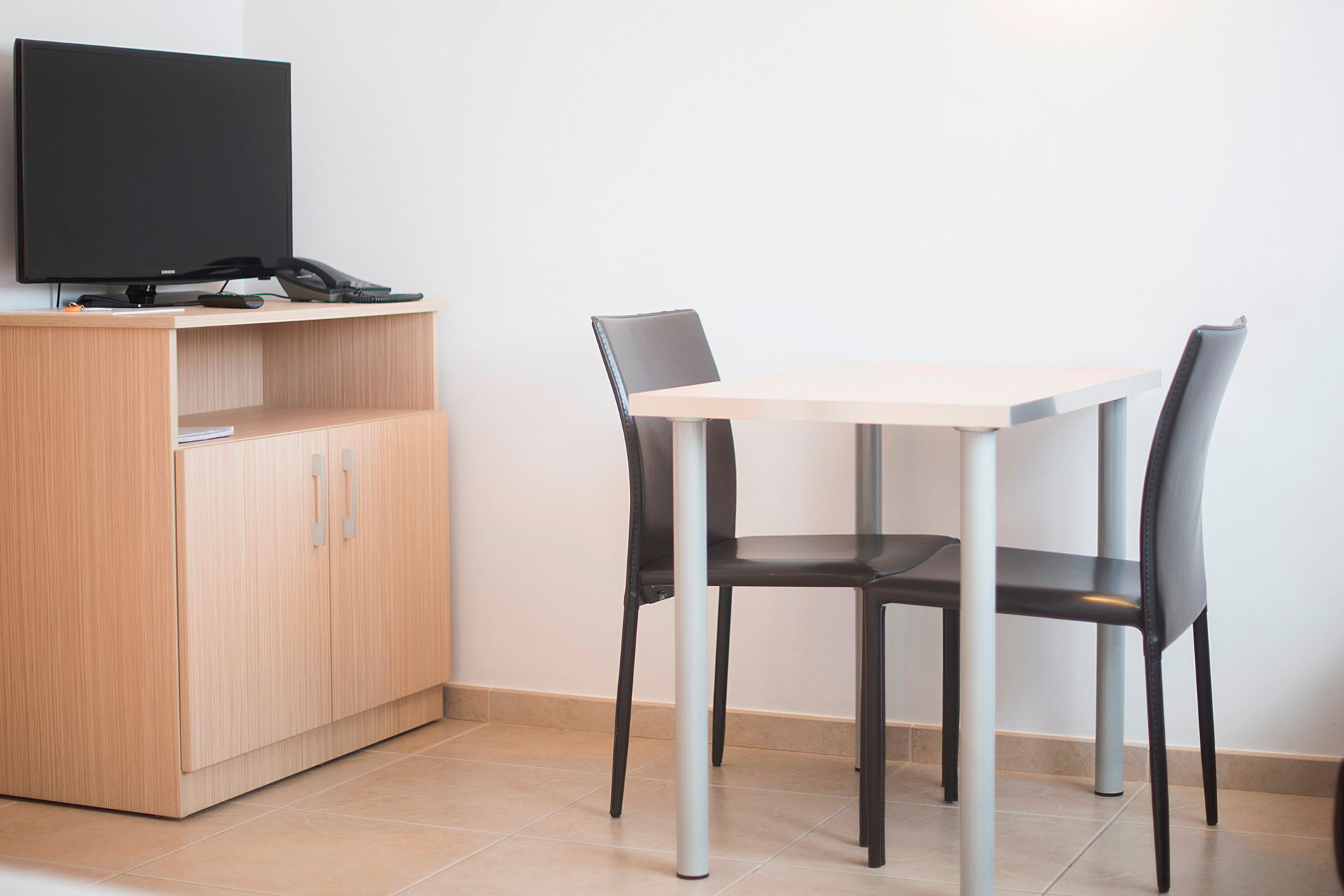 Ce studio de 28 m² est un espace pratique et fonctionnel, spécialement conçu pour les couples ou voyageurs recherchant autonomie et confort. La pièce principale intègre un lit de 160×200 avec commandes domotiques au niveau de la tête de lit, ainsi qu’un agréable coin salon équipé d’un canapé en cuir deux places, d’une table à manger et d’une TV LED écran plat de 32″. Vous disposerez également d’une connexion Wi-Fi haut débit gratuite et d’un hall d’entrée avec de grands placards pour vos bagages. La cuisine offre tout le nécessaire pour vous sentir comme chez vous : réfrigérateur combiné, plaque à induction, hotte aspirante, micro-ondes avec grill et lave-linge de 6 kg (avec accès à un espace pour étendre le linge), ainsi que toute la vaisselle de base pour cuisiner et manger. La salle de bain privée est entièrement équipée avec douche à l’italienne, bidet, miroir type loge de maquillage, distributeur de savon et un jeu de serviettes pour chaque client. Pour compléter votre expérience, nous proposons la possibilité de réserver notre SPA VIP, un espace privatisé exclusivement pour vous, avec ambiance lumineuse et musicale (service non inclus dans le tarif de base, disponible de 10h à 22h pour 25 € / personne / heure). Veuillez noter que le studio n’inclut pas de peignoir ni de chaussons. Vous trouverez également des produits de nettoyage de base dans les placards pour faciliter l’entretien de l’espace pendant votre séjour.