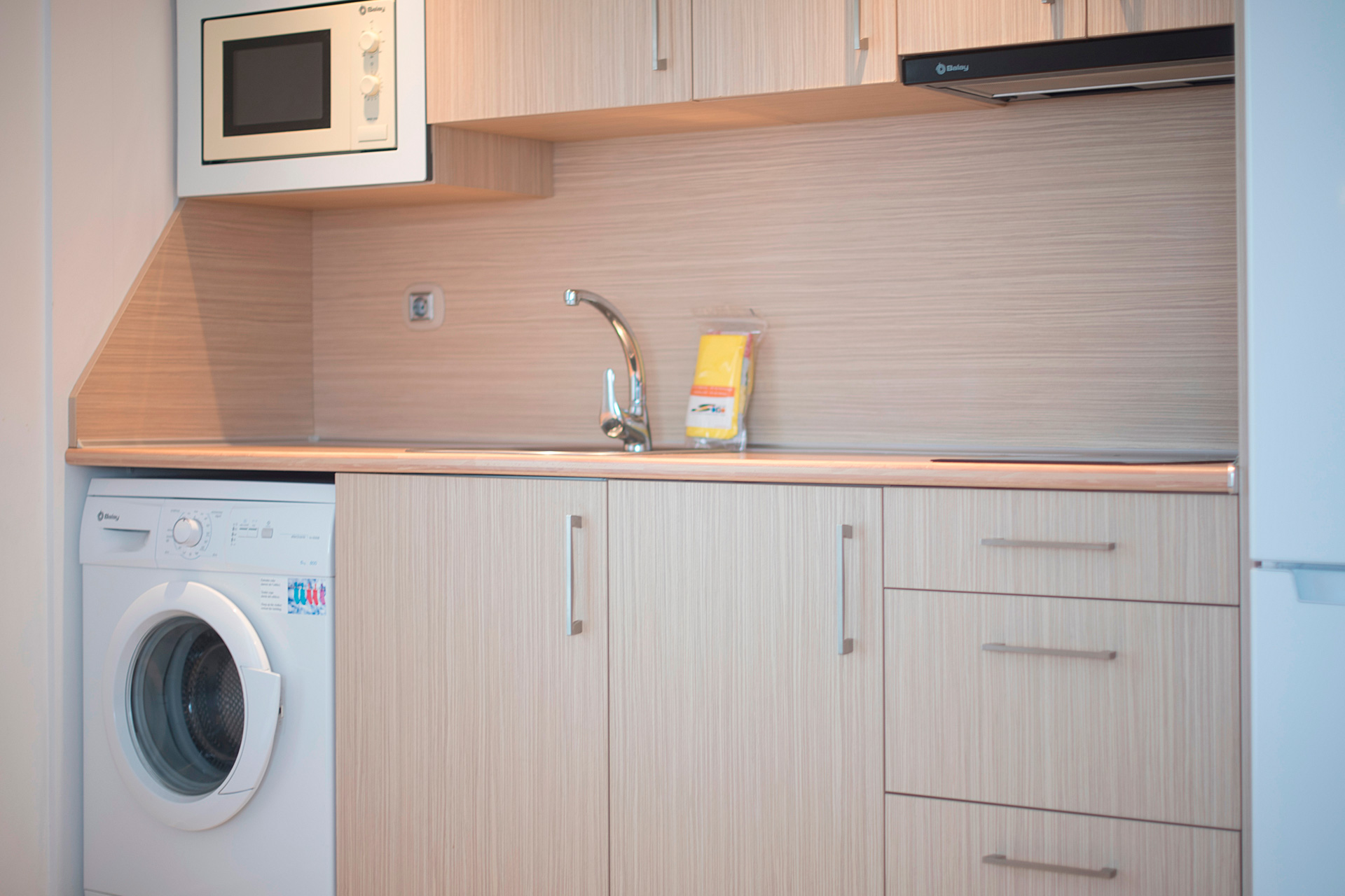 L’espace salon comprend un canapé en cuir deux places, une table à manger et une TV de 32″, le tout contrôlé grâce à un système domotique. La cuisine est entièrement équipée avec électroménager haut de gamme (y compris lave-linge) et la salle de bain dispose d’une grande douche à l’italienne, d’une ventilation naturelle et d’amenities premium.